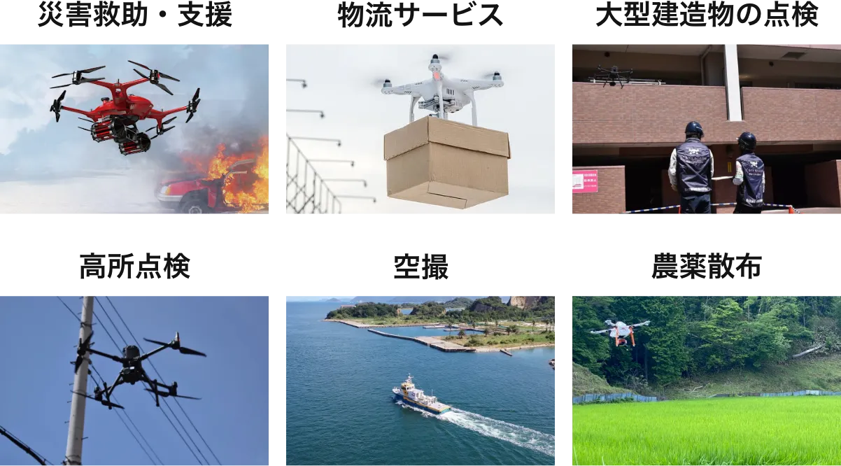 - ドローンスクール事業(FPV撮影、建物調査、散布、輸送等)