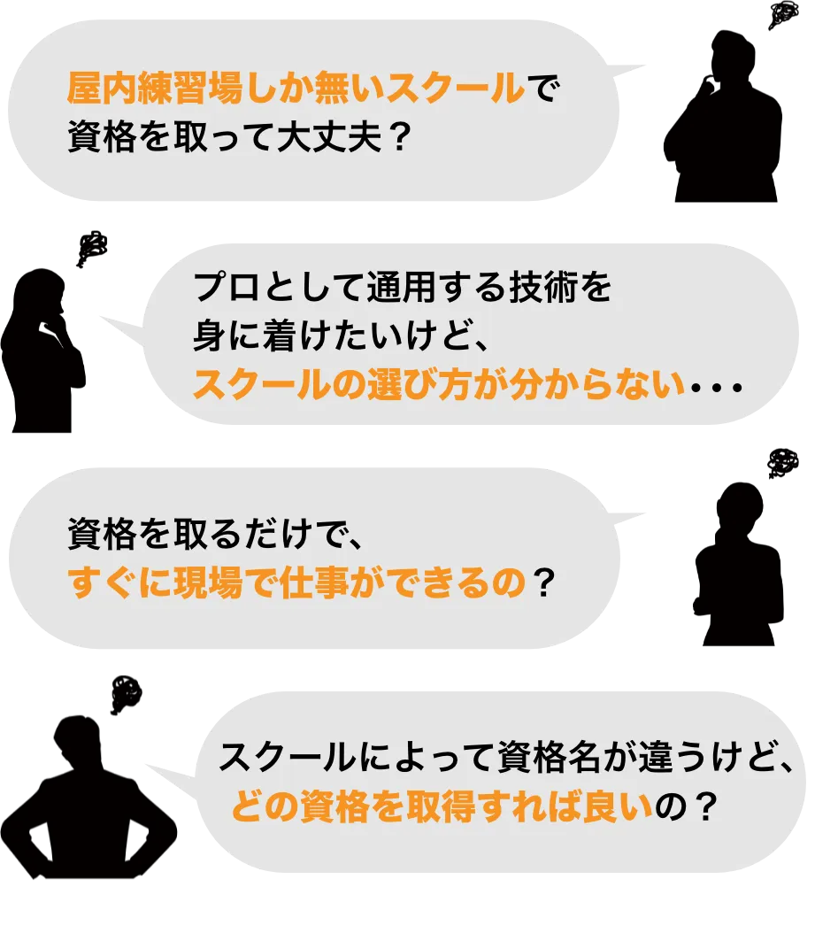 技術だけでなく、法知識や事故リスク回避など実践的な指導内容。